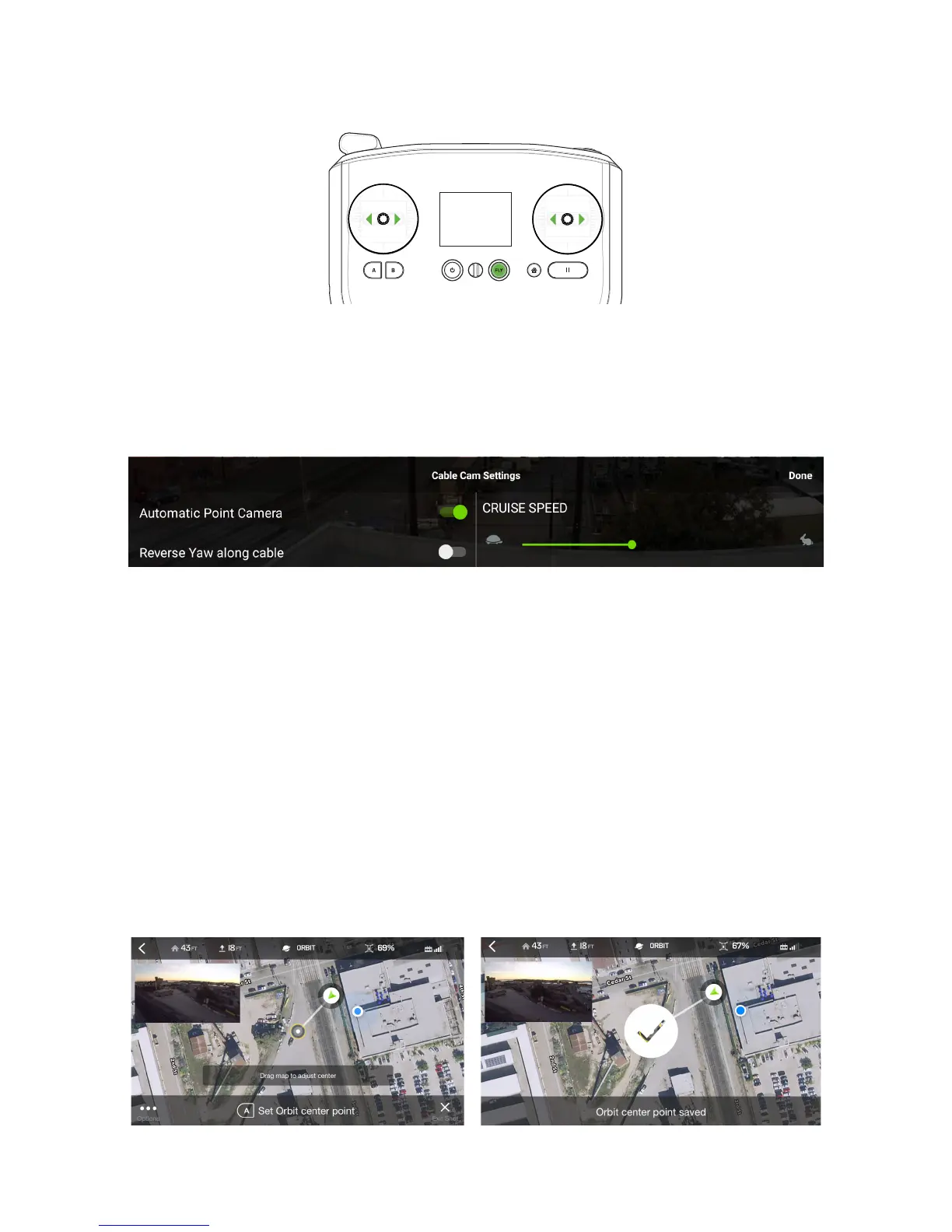 point, the App displays a Orbit Center Point Saved confirmation. To adjust the position of the center point during