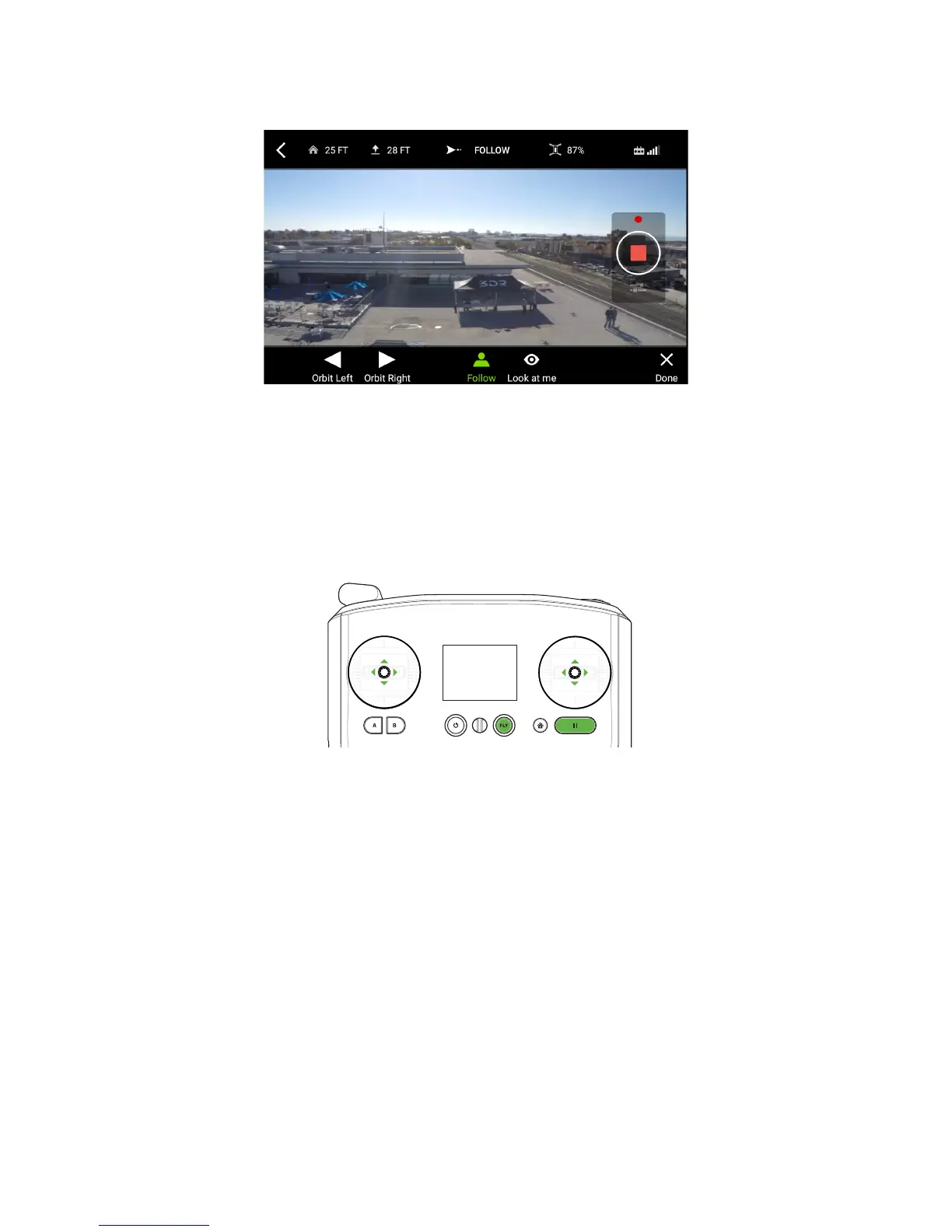 the right stick horizontally. To adjust Solo’s altitude during Follow, move the left stick vertically. And to override the