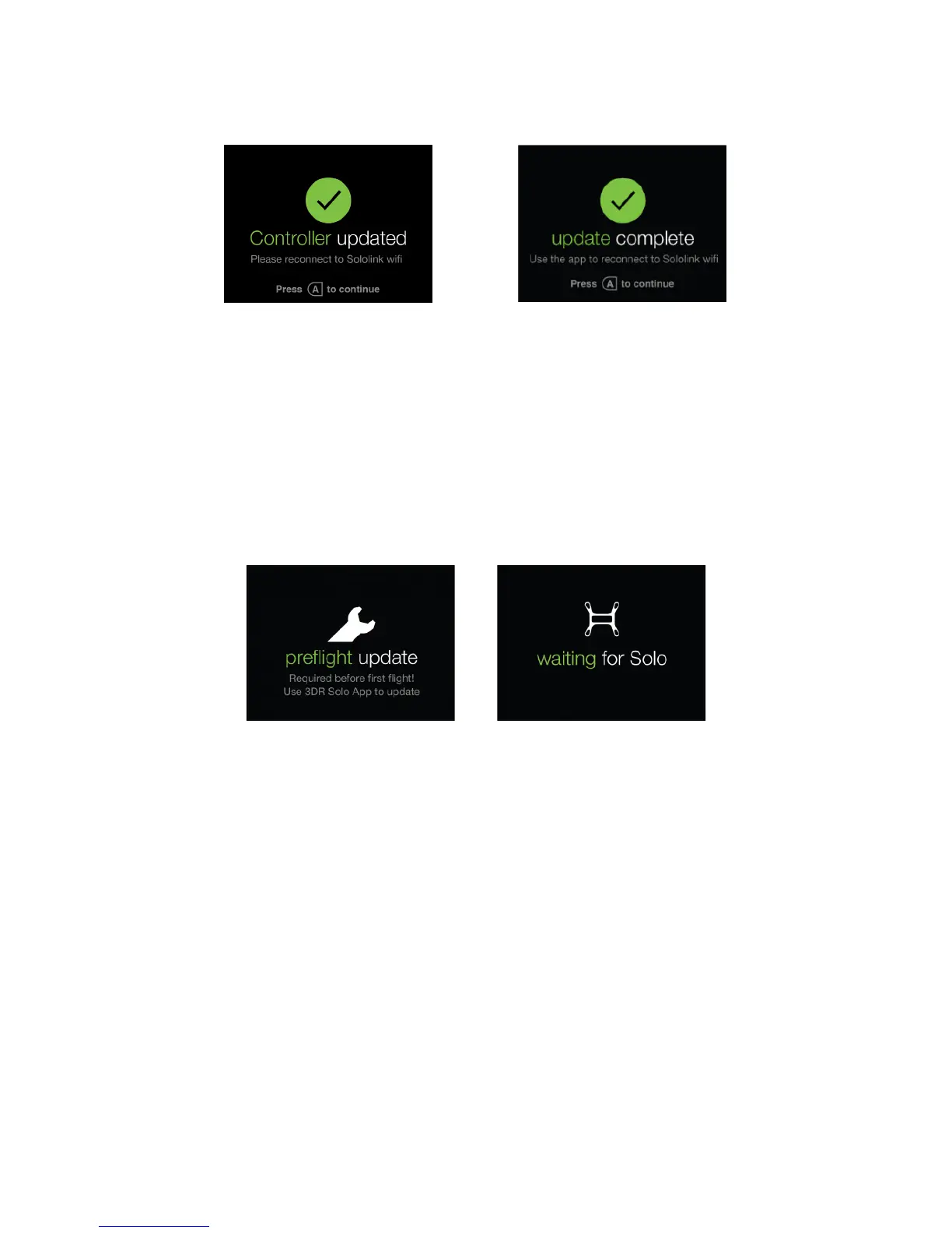 After you reboot the controller, it displays the Preflight Update or Waiting for Solo screen.
