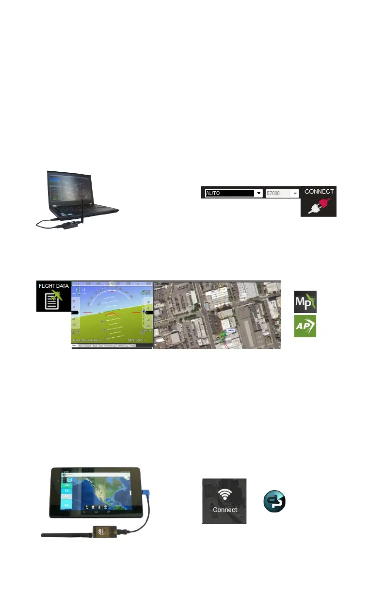 Ground station tablet with radio connected DroidPlanner: Connect icon
