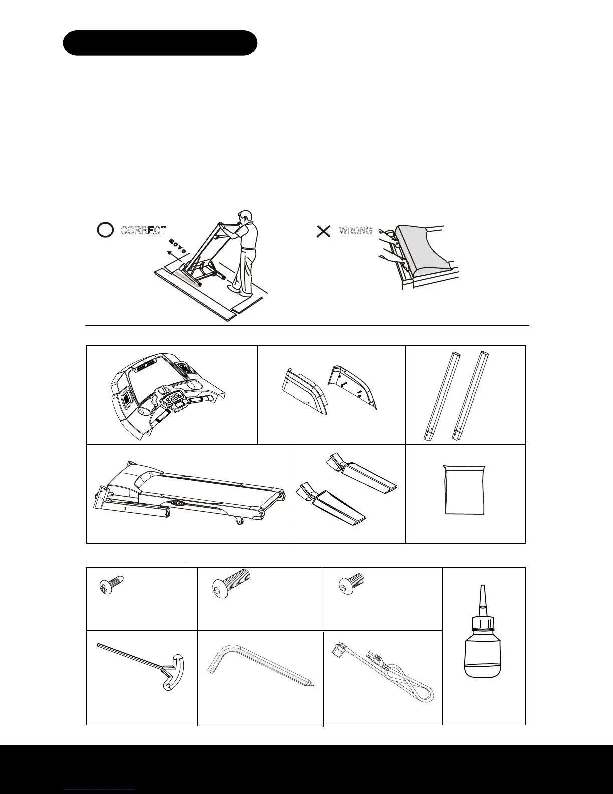 Use extreme caution when assembling or moving this treadmill. Failure to do so could result in injury.