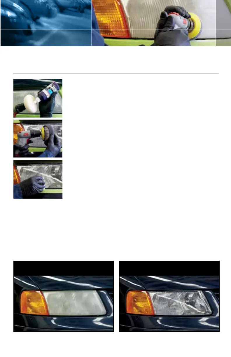 C. Pula la superficie de los faros utilizando la pulidora de 3M