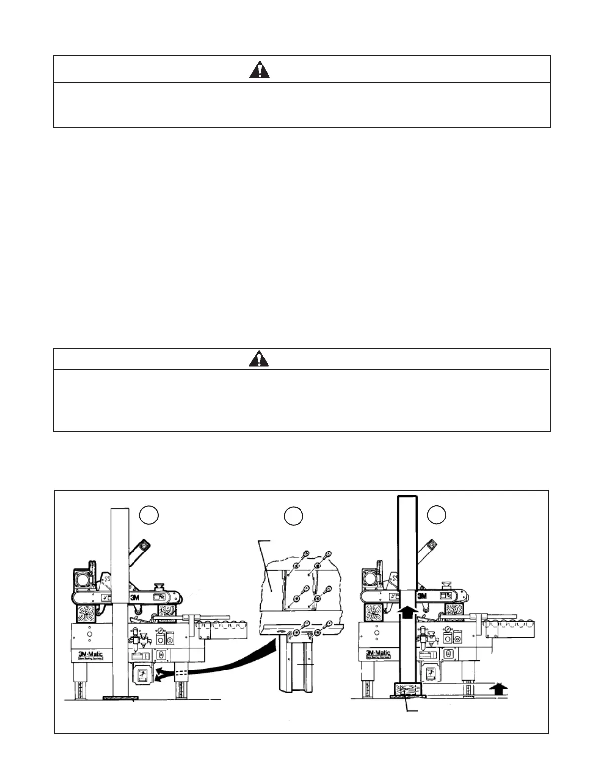 3. Lift the outer columns up one set of mounting holes, and place spacers between the blocks on the fl oor and