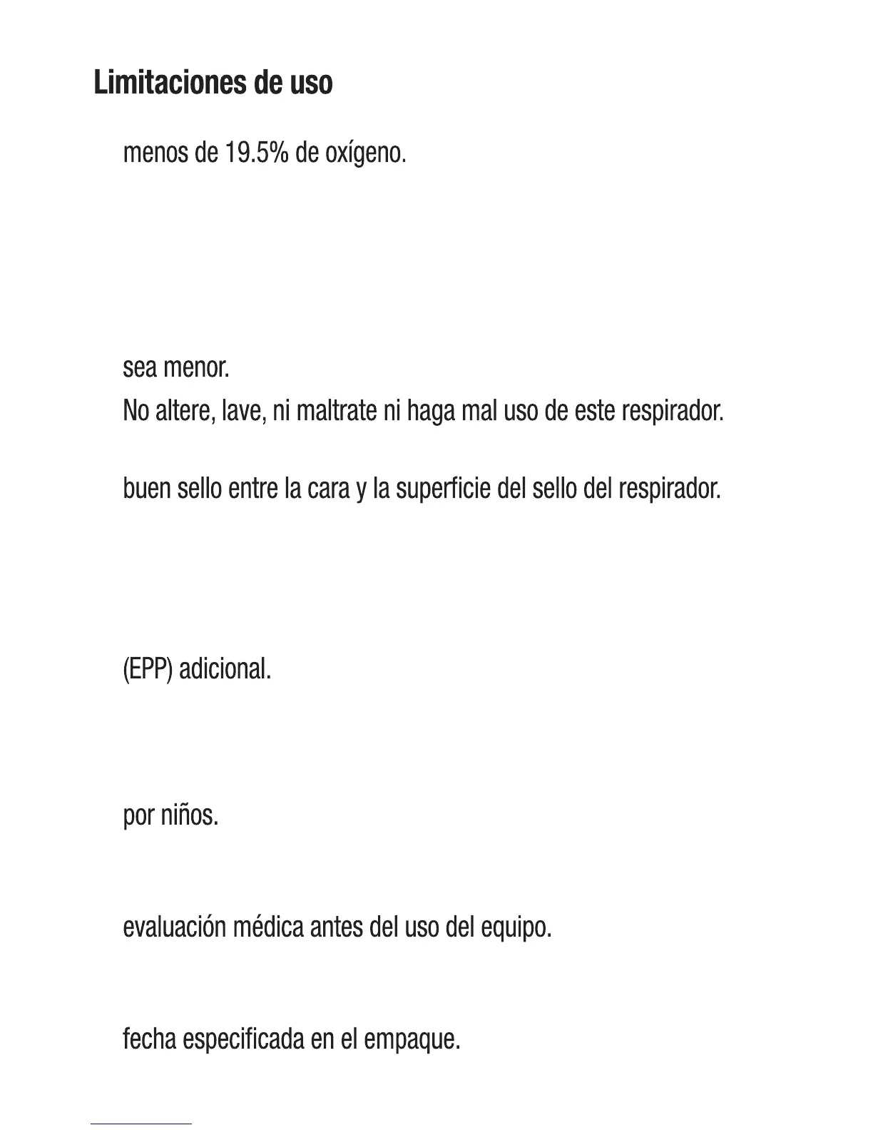 1. Este respirador no suministra oxígeno. No use en atmósferas con