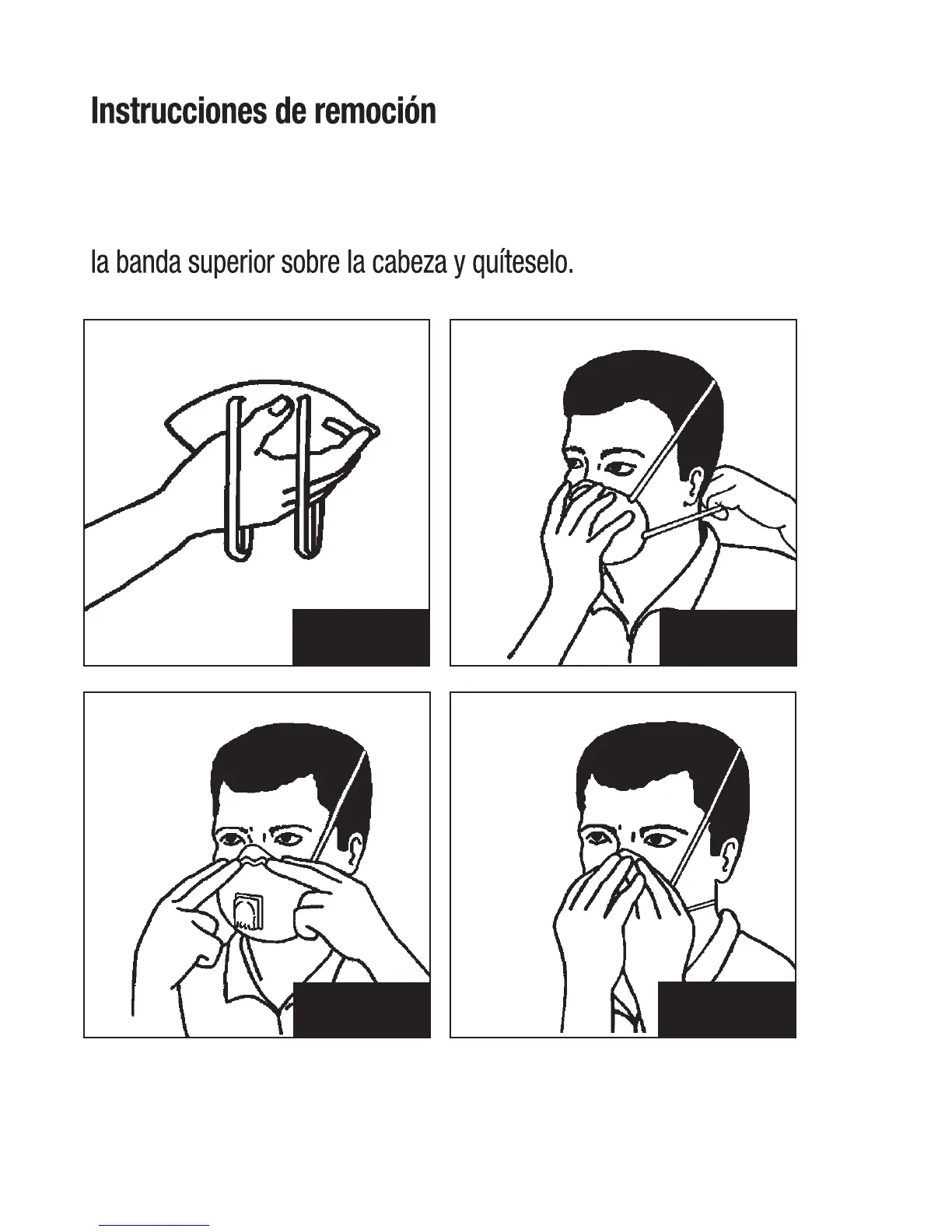 respirador en la mano para mantener la posición en la cara. Jale la