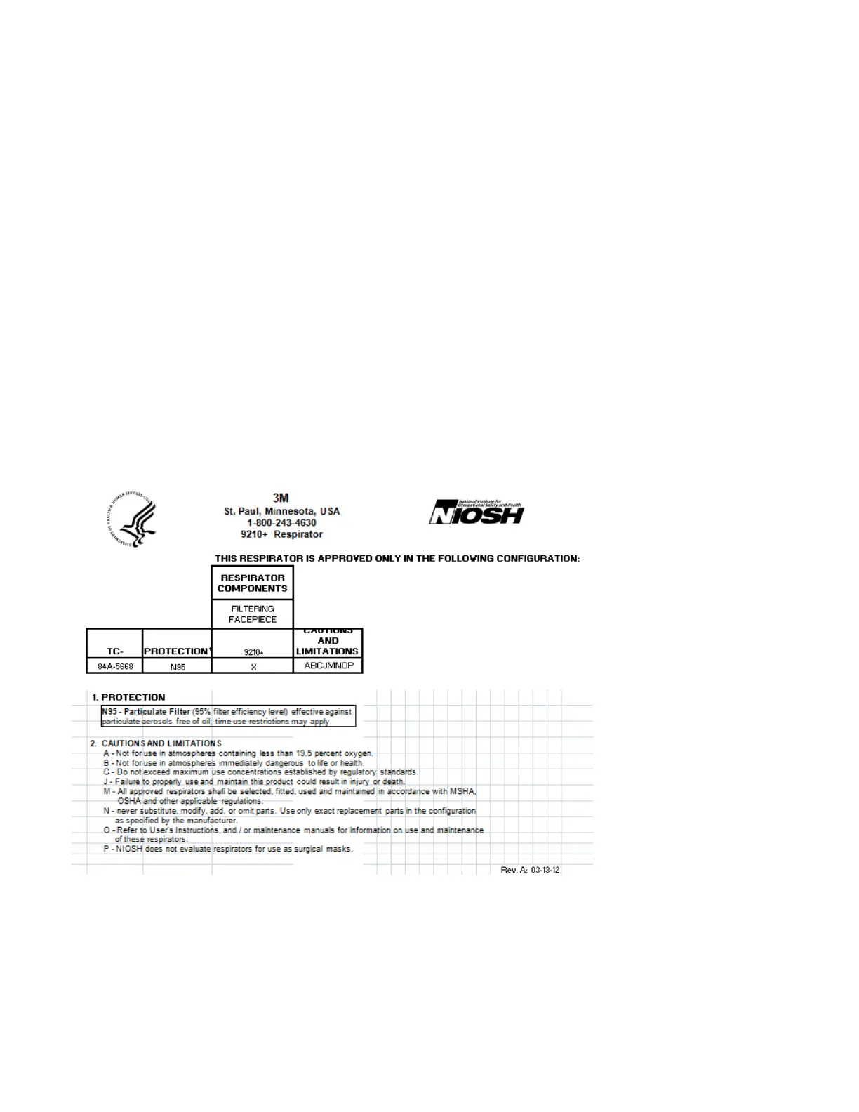 At least 95% filtration efficiency against solid and liquid aerosols that do not contain oil.