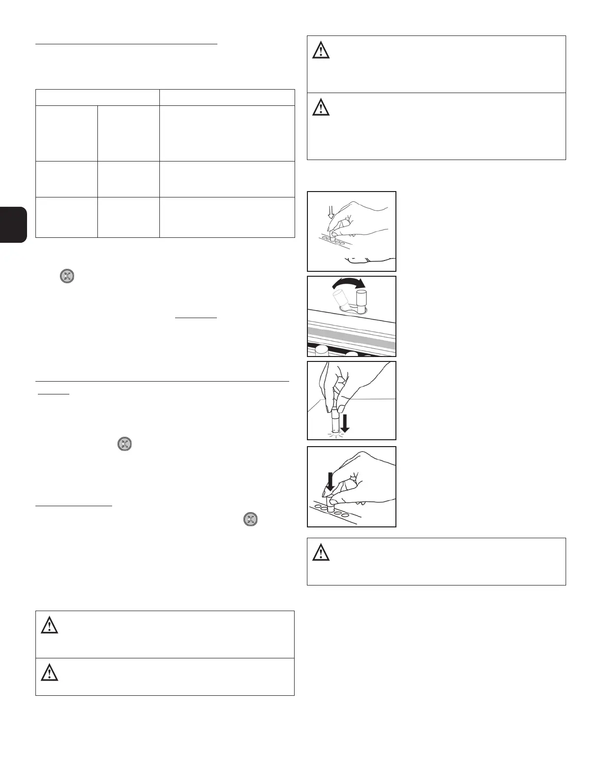 weergegeven (+ of -), zal de configuratie van de bezette kokers NIET veranderen tot