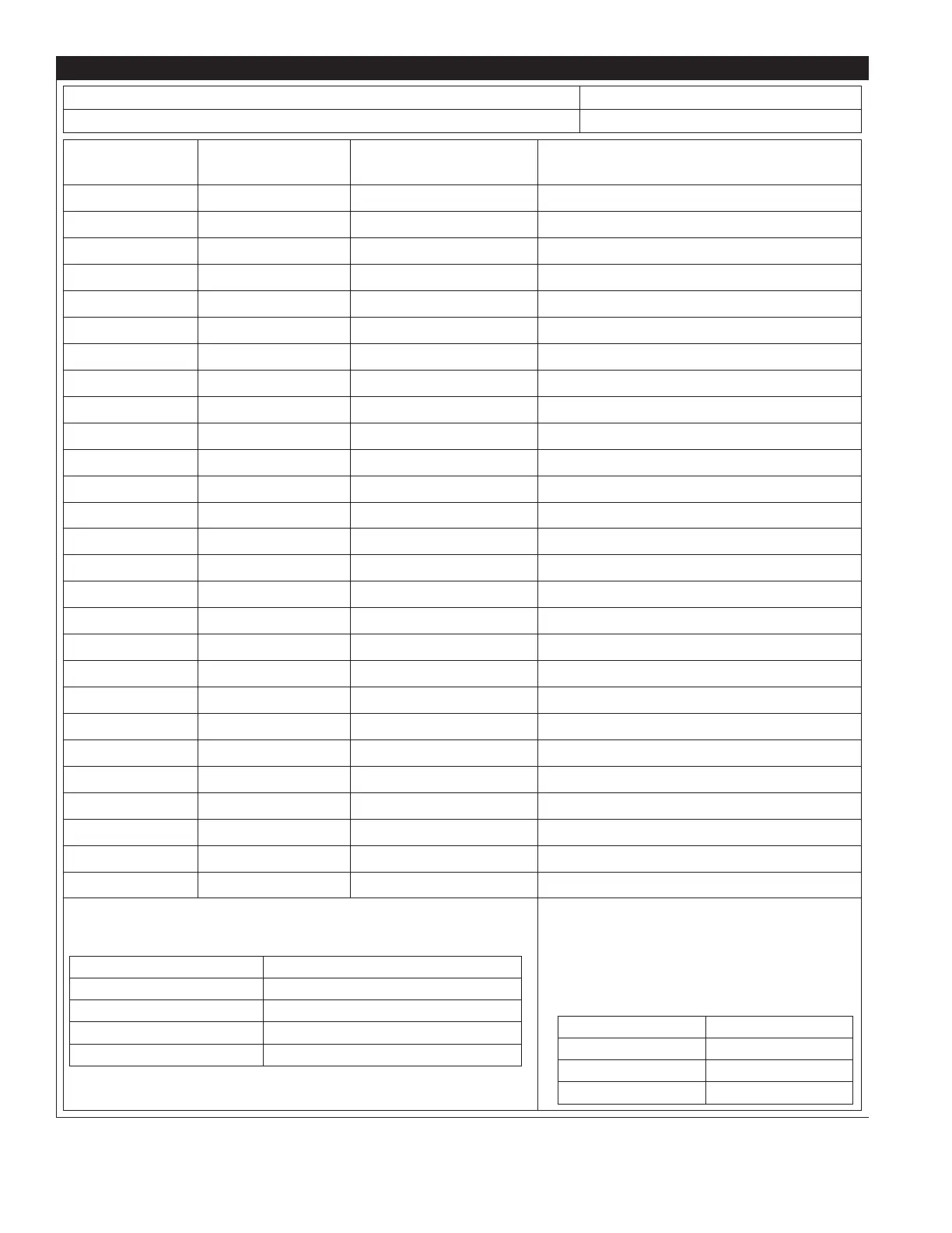 Tabell 3 – Nedstigningslogg