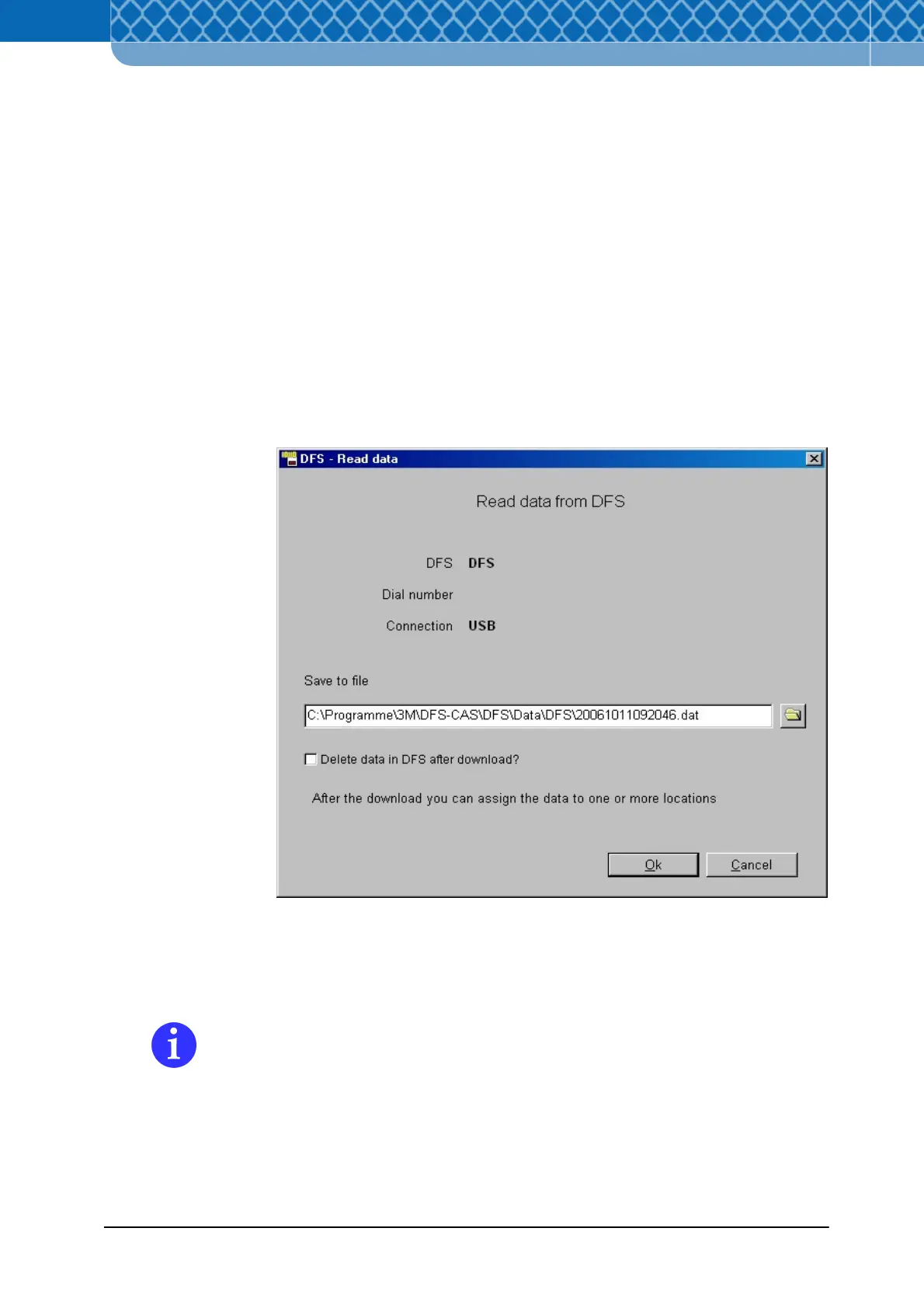 the download window via the “Read DFS data” command.