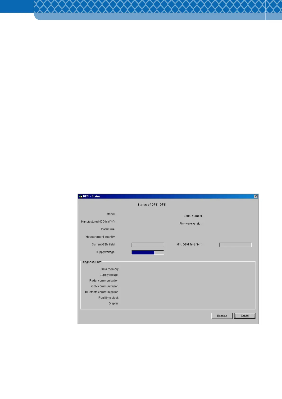 anytime using the "Status" command in the PC oder PDA software. The following additional