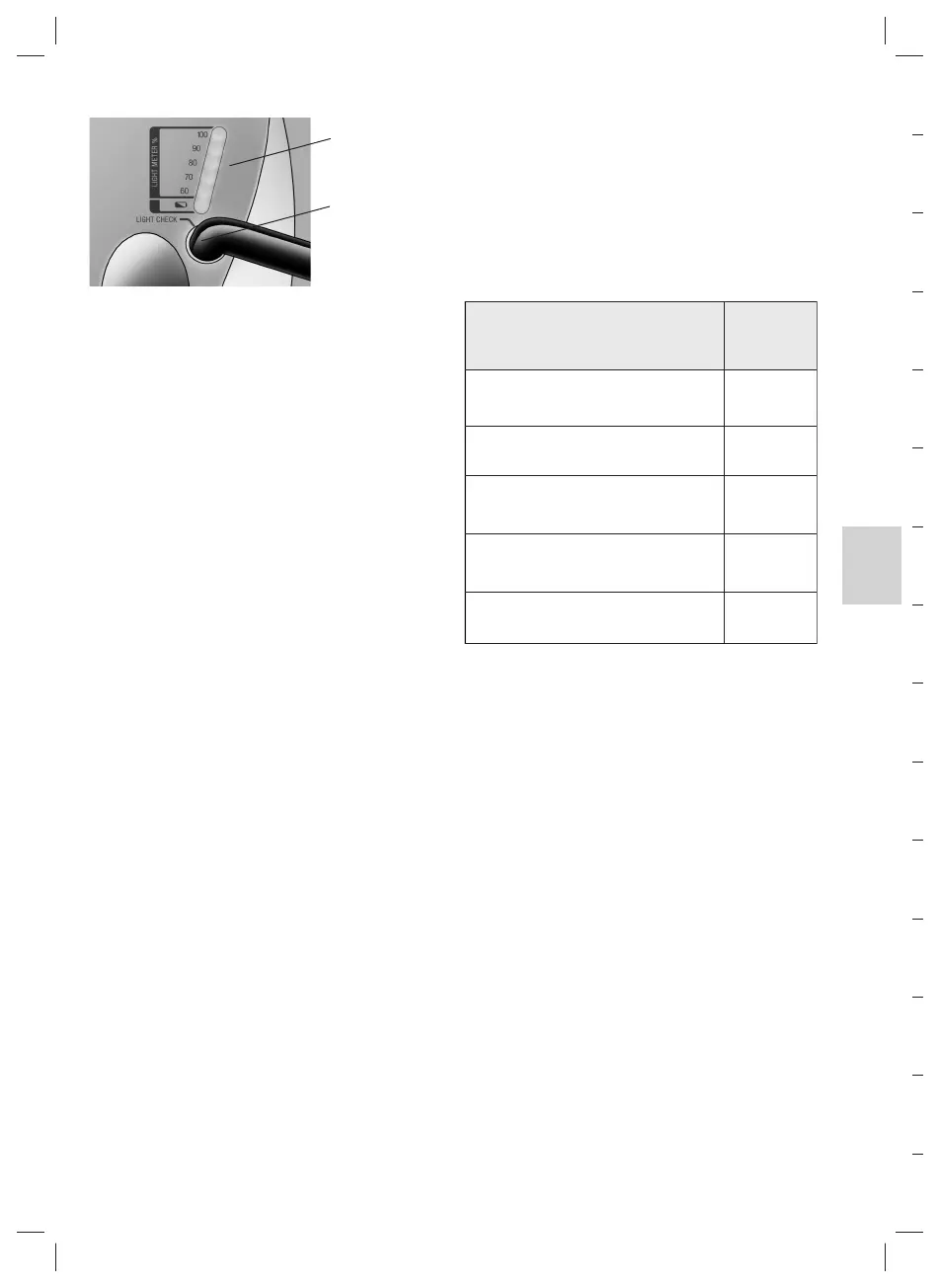 5 LED-uri = 100%, 4 LED-uri = 90%,