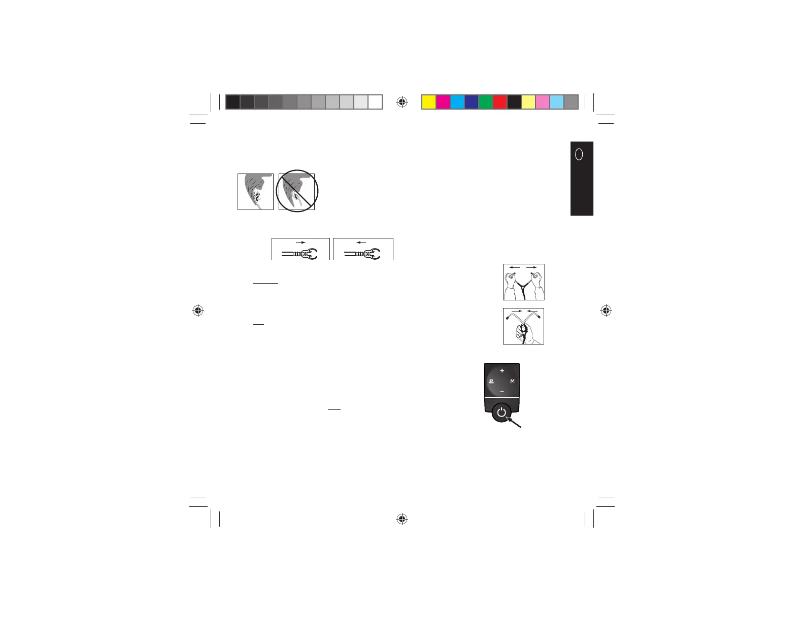 For å øke fjærspenningen, grip ørebøylene med en hånd der hvor bøylene går inn i slangen og