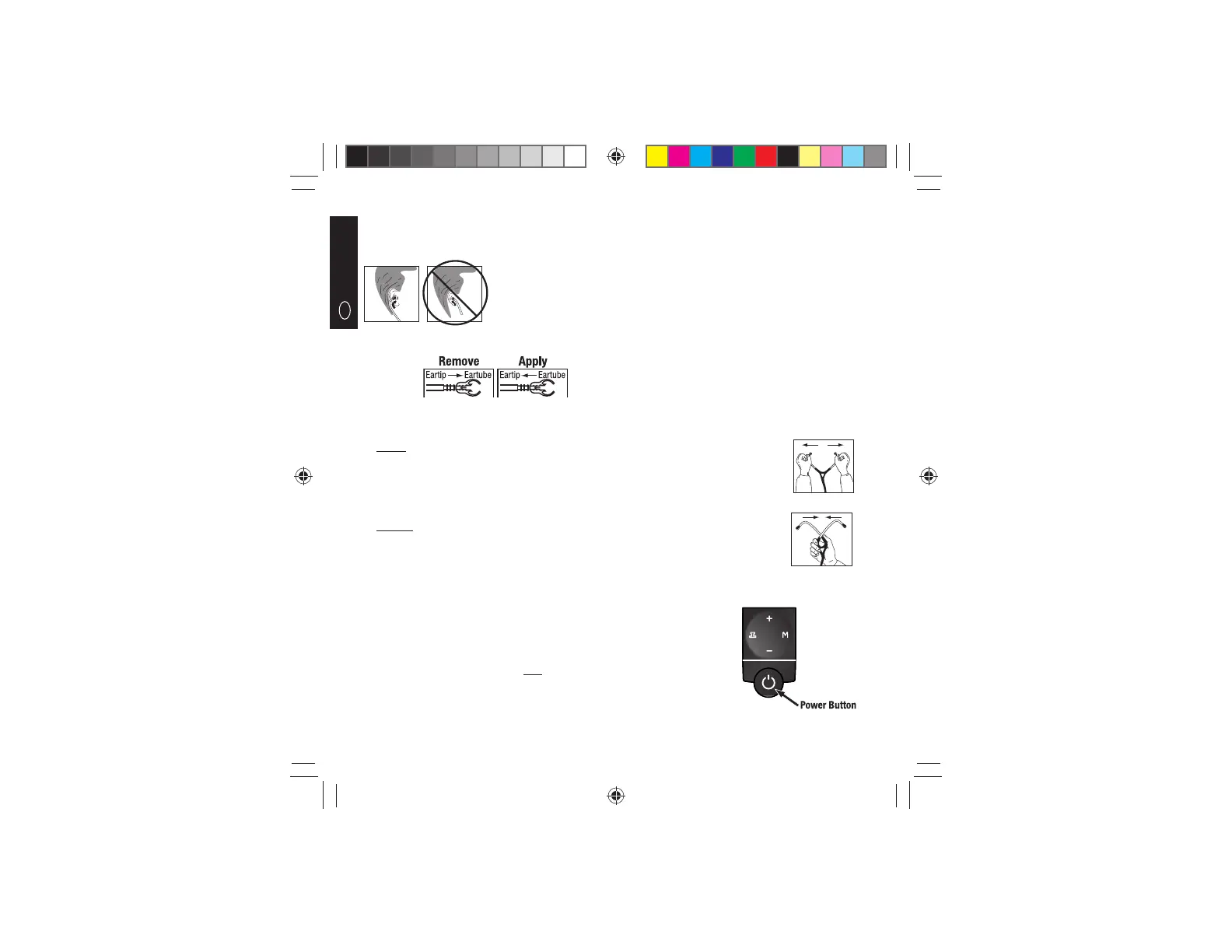 To remove eartips, pull eartips fi rmly away from eartube. To apply new eartips, push eartip fi rmly onto eartube to secure.