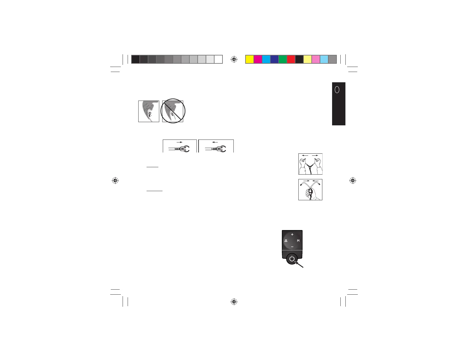 Para reducir la tensión del muelle sobre los auriculares, sujete cada tubo por la curva