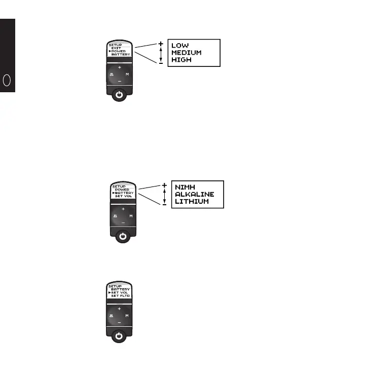 Attväljabatterityp: Välj alternativet BATTERI i menyn SETUP. Använd ( - ) eller ( + )knapparna för att bläddra igenom