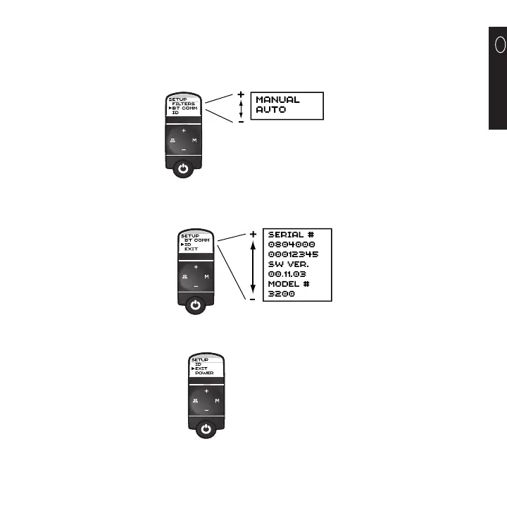 Um Informationen über das Modell und die Softwareversion zu erhalten: Wählen Sie die Option „ID“ im SETUP-Menü.