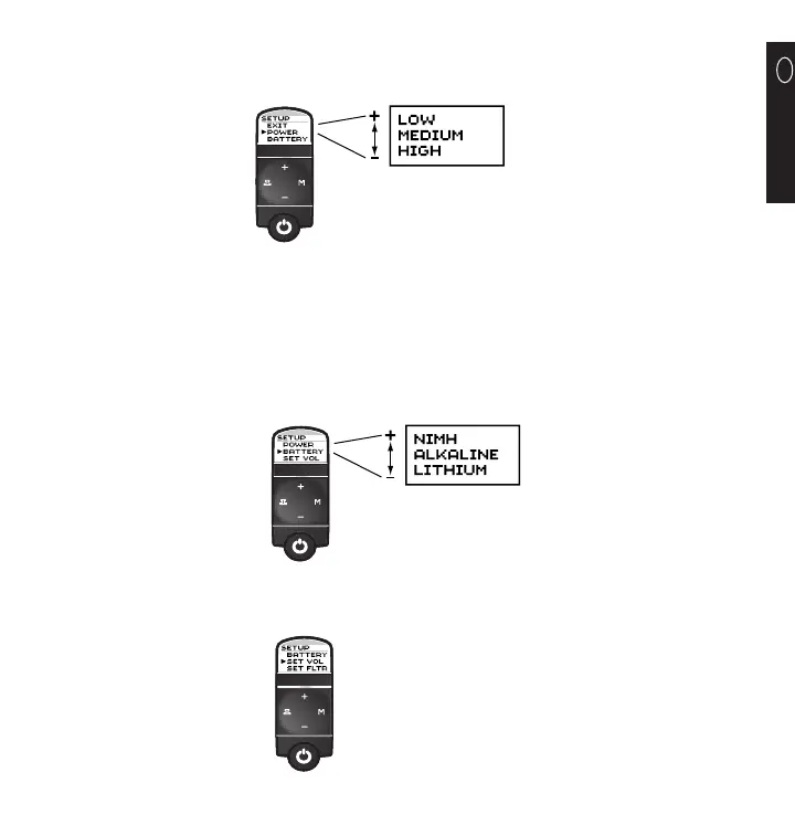 rilasciare il pulsante (M) per selezionare l’impostazione desiderata. L’impostazione di fabbrica è la batteria ALCALINA.
