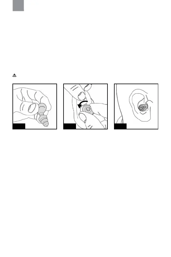 4. Zaokrenite čepić za uši prema stražnjem dijelu glave (sl. F:3).