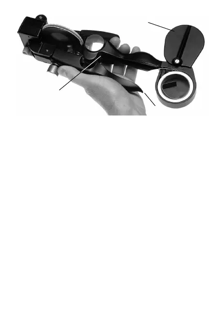 1. Nehmen Sie den Etikettendrucker in Ihre linke Hand.