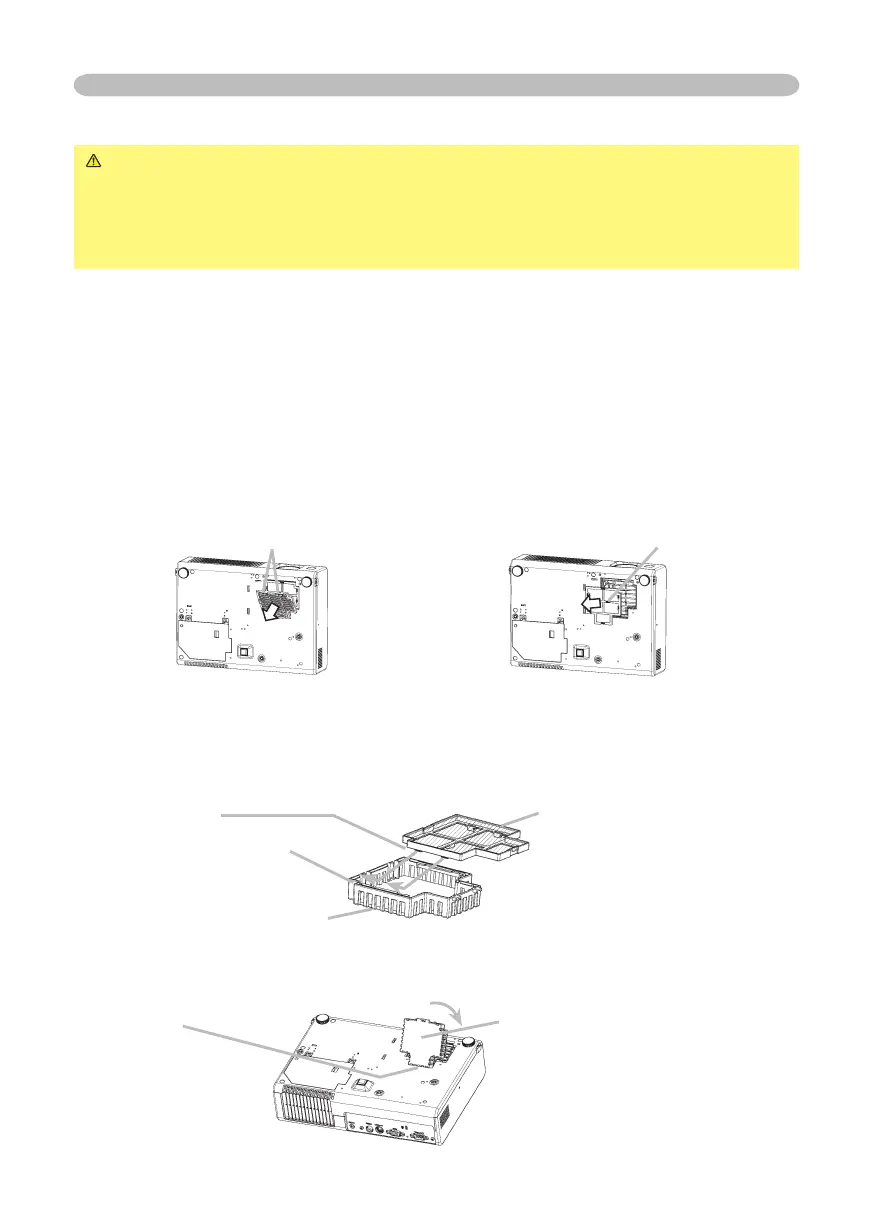 Remove the filter cover and the air filter. Hold the knobs while pulling out it.