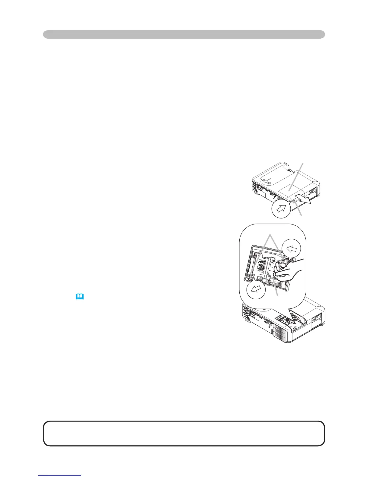 Loosen the lamp door screw (marked by arrow)