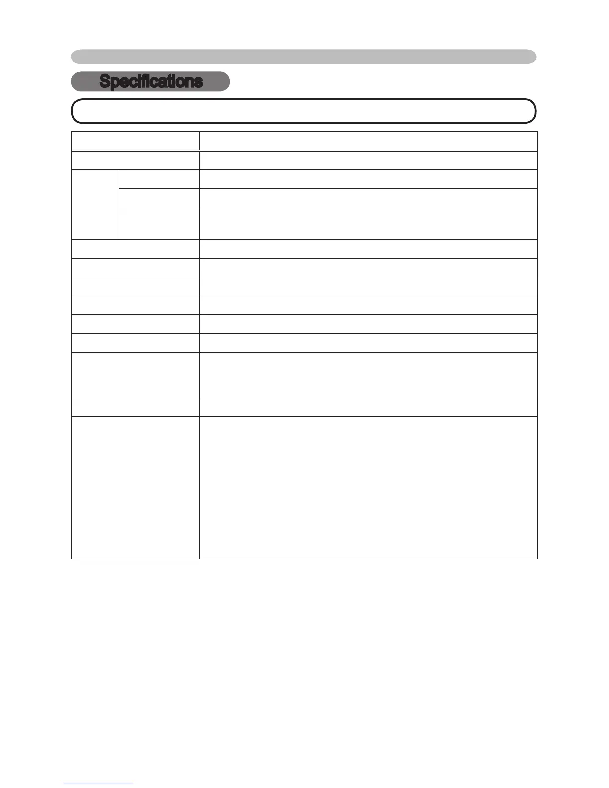 NOTE • These specifications are subject to change without notice.