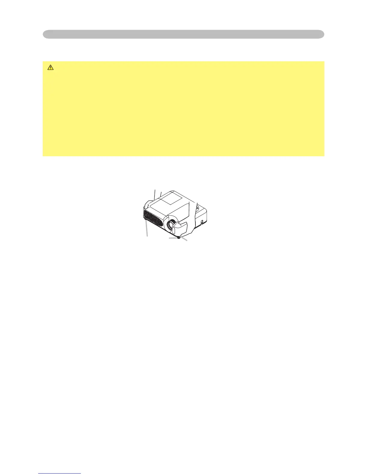 ►Do not incline the projector rightward or leftward. Also do not incline it