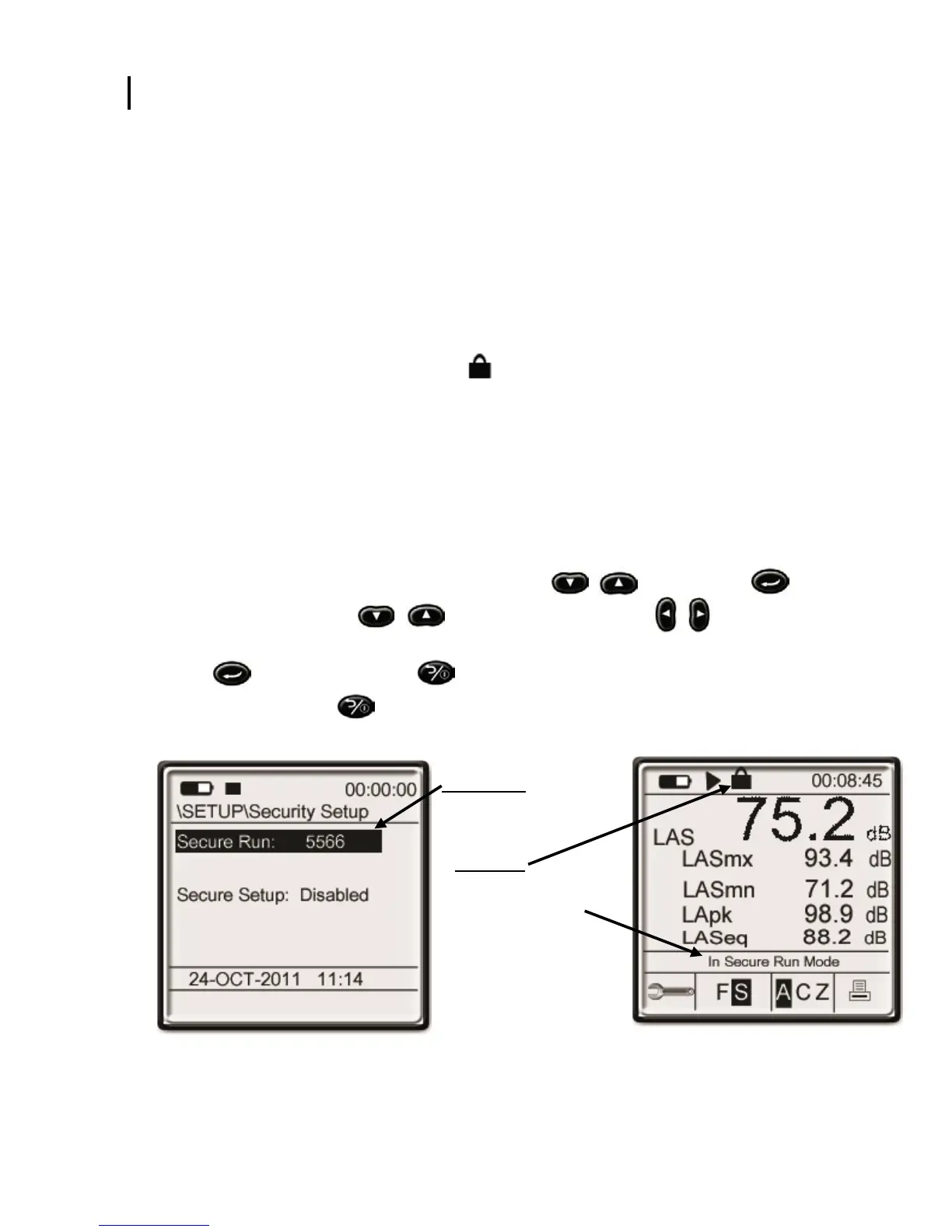 When in secure run mode, a lock symbol will appear in the screen indicator section. The end-user