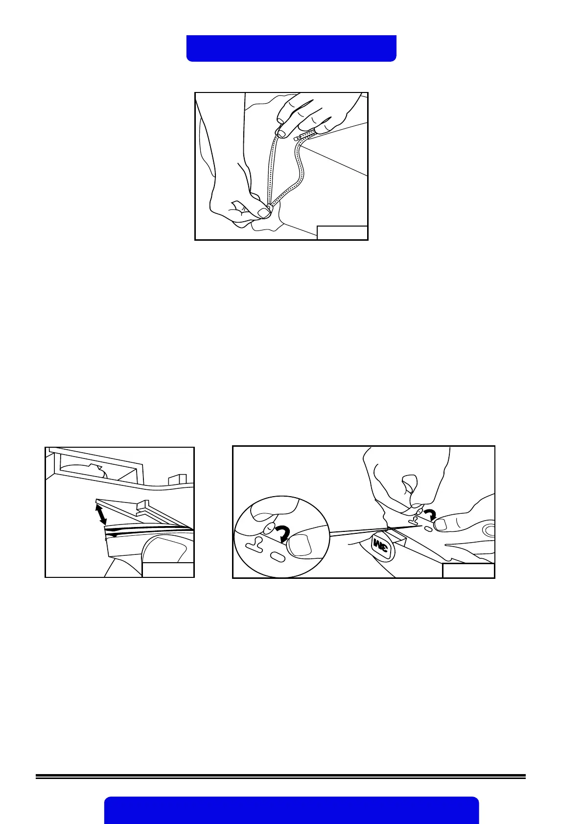 inserted into the groove. Grasp fabric tab with button and fold over to inside of suspension. Attach