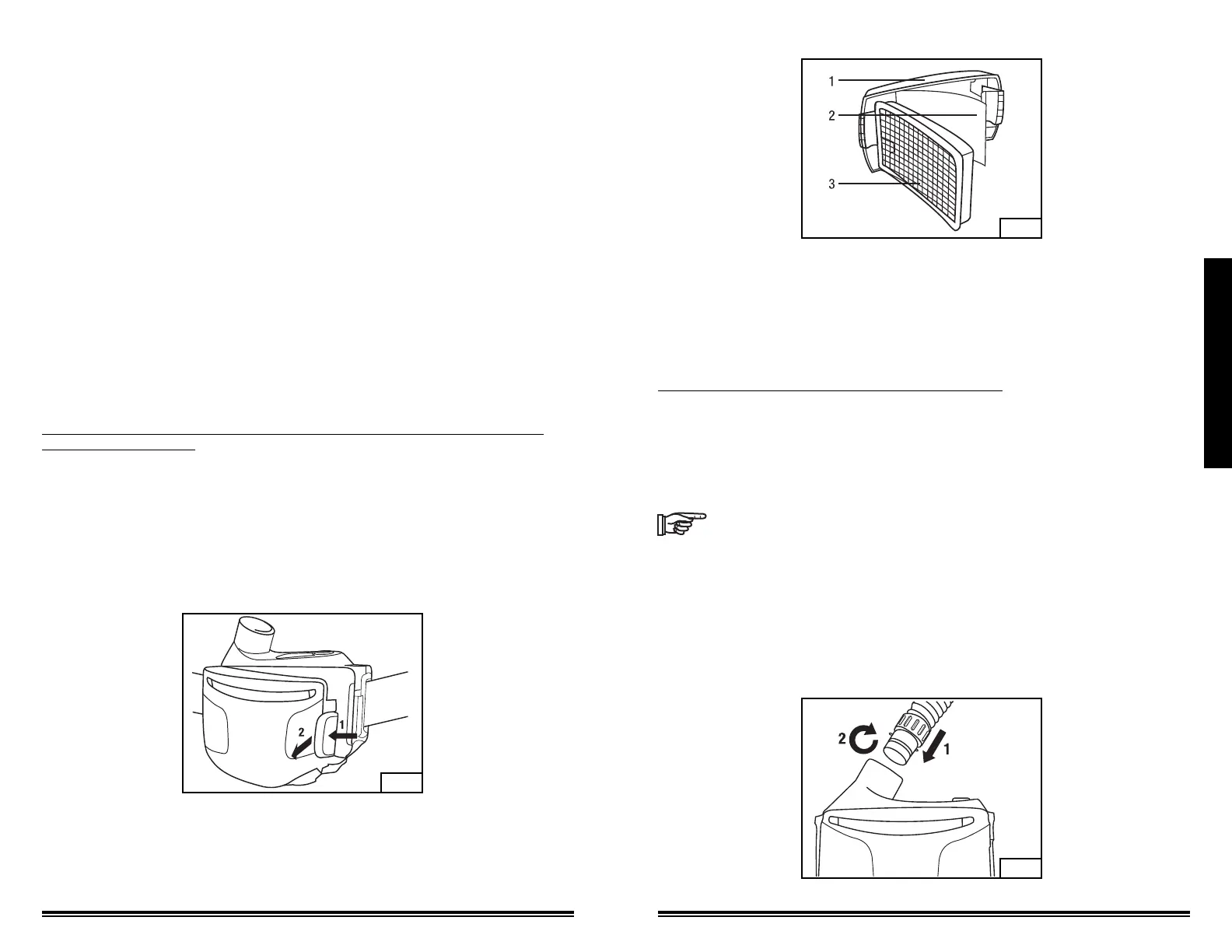 o Tenir l’ensemble respirateur de manière que le couvercle du fi ltre soit face à soi.