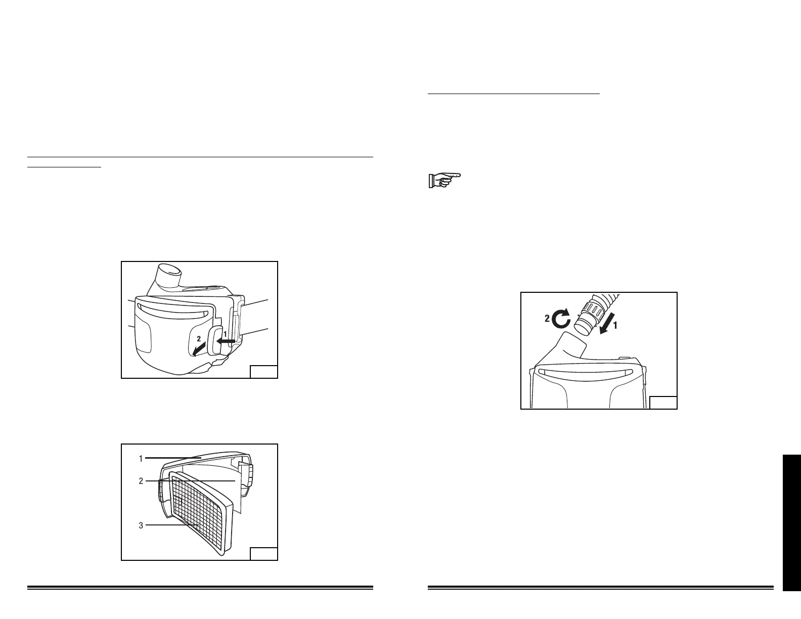 3. Coloque o fi ltro HE e o pré-fi ltro ou o anti-fagulha (se algum deles estiver sendo usado) na
