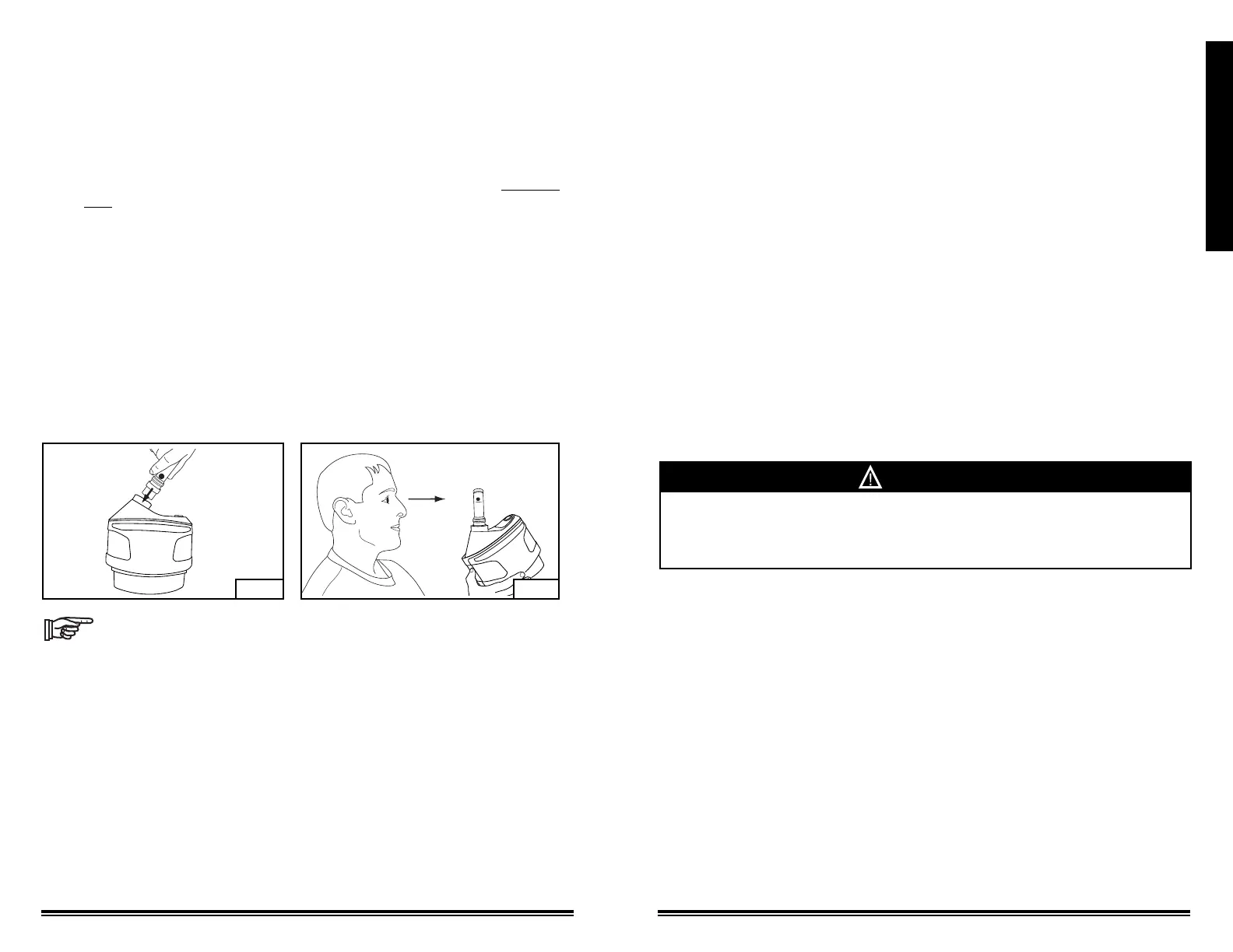 o Remove your hand from the end of the breathing tube; the audible alarm and the fl ashing red