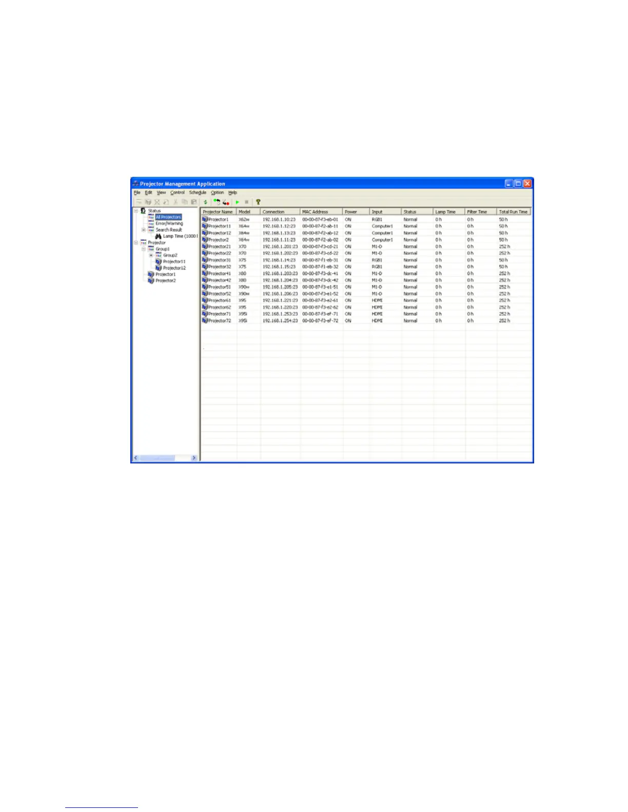 Shows the list of projectors that are ONLY in Error or Warning state.