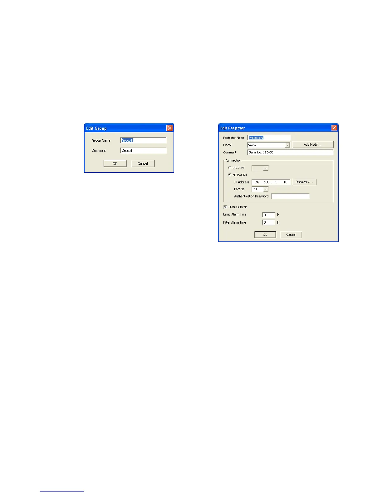 You can change a group or individual projectors settings. Click a group on the tree view, select [Edit] [Edit].