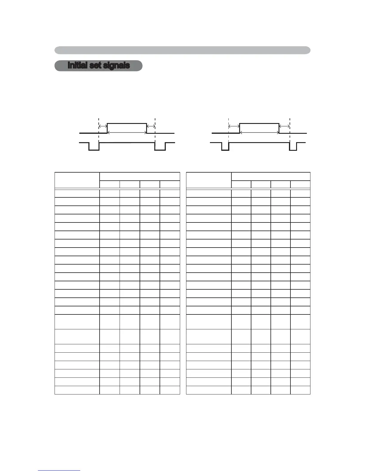 The following signals are used for the initial settings. The signal timing of some