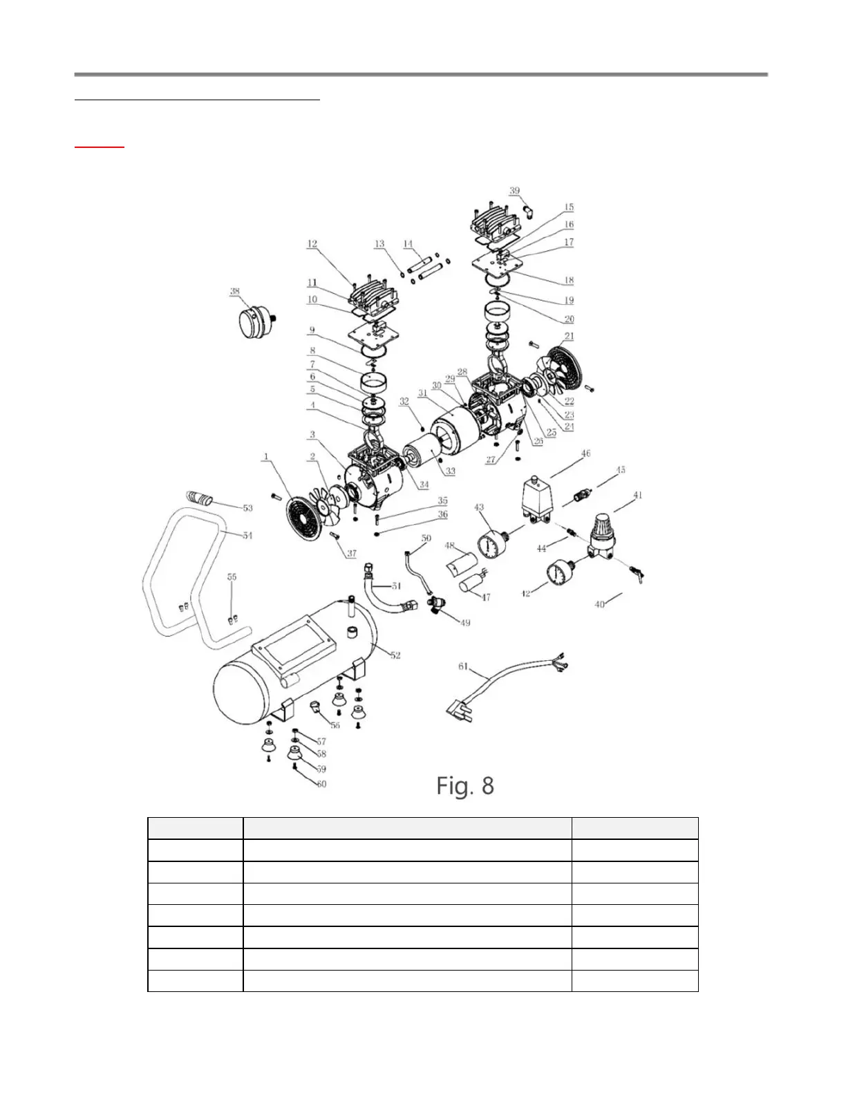 6.4.1 Air Compressor Parts List