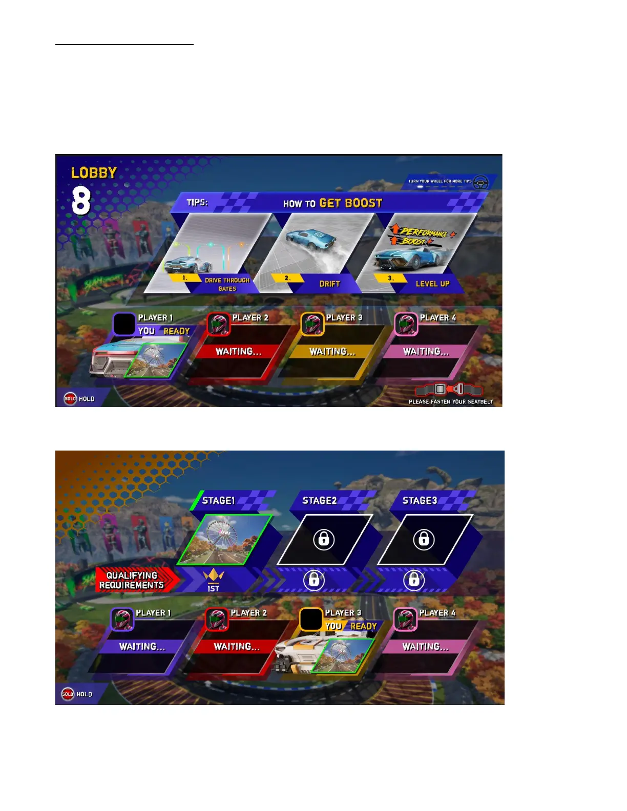 In a multi-play race, after selecting tracks and cars, it will enter the Lobby Page showing the data of each joined