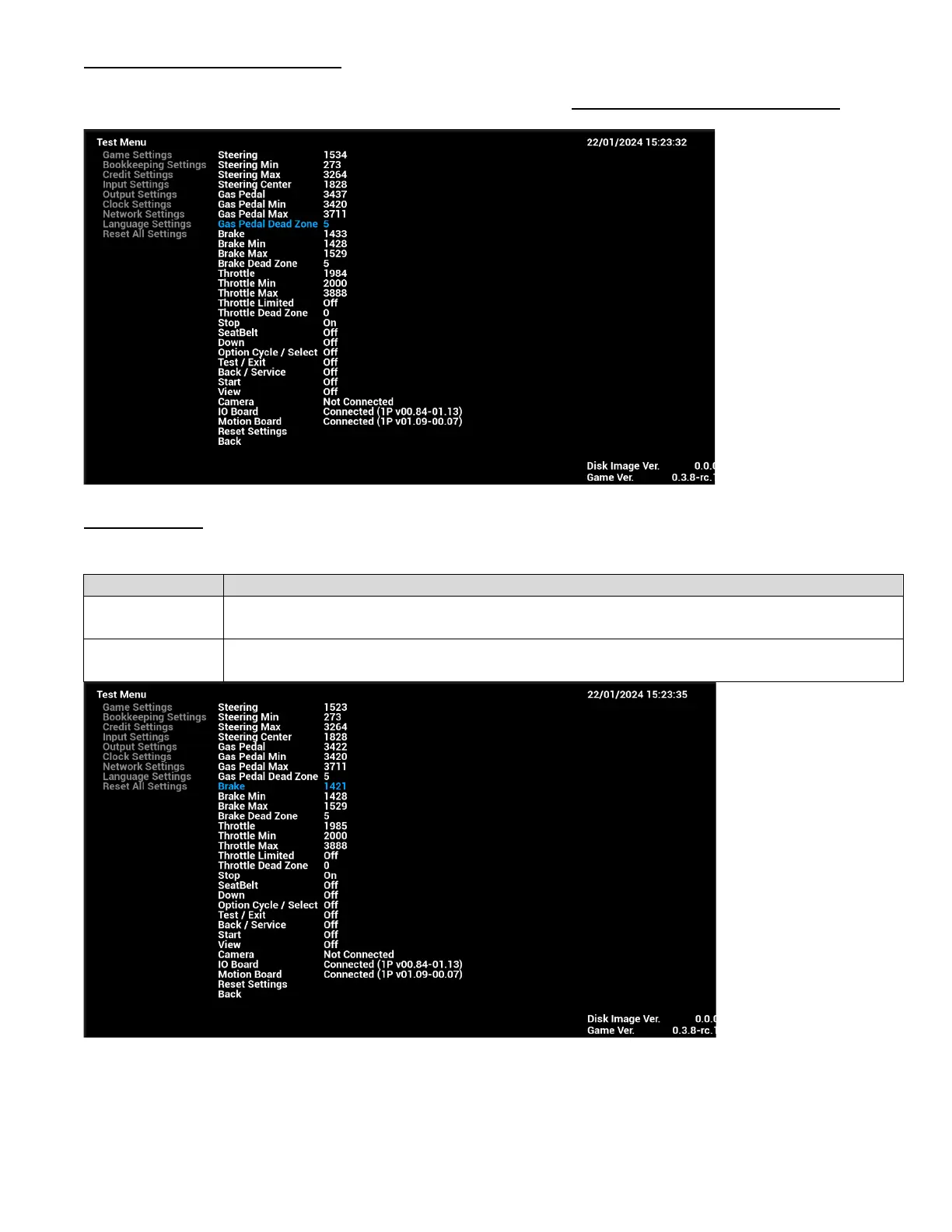 Under Gas Pedal Dead Zone, deadzone of gas pedal can be calibrated only when Gas Pedal value is detected.