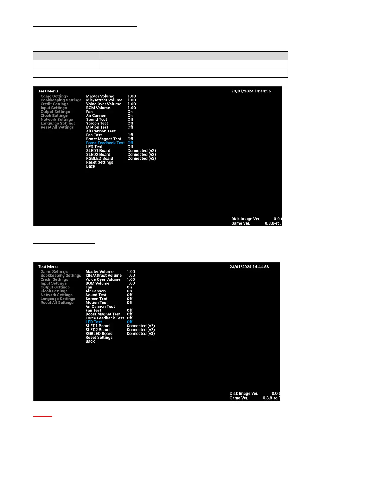 NOTE: Logo LED tests are for the non-Matrix LED header versions of this game. If your game has the Matrix