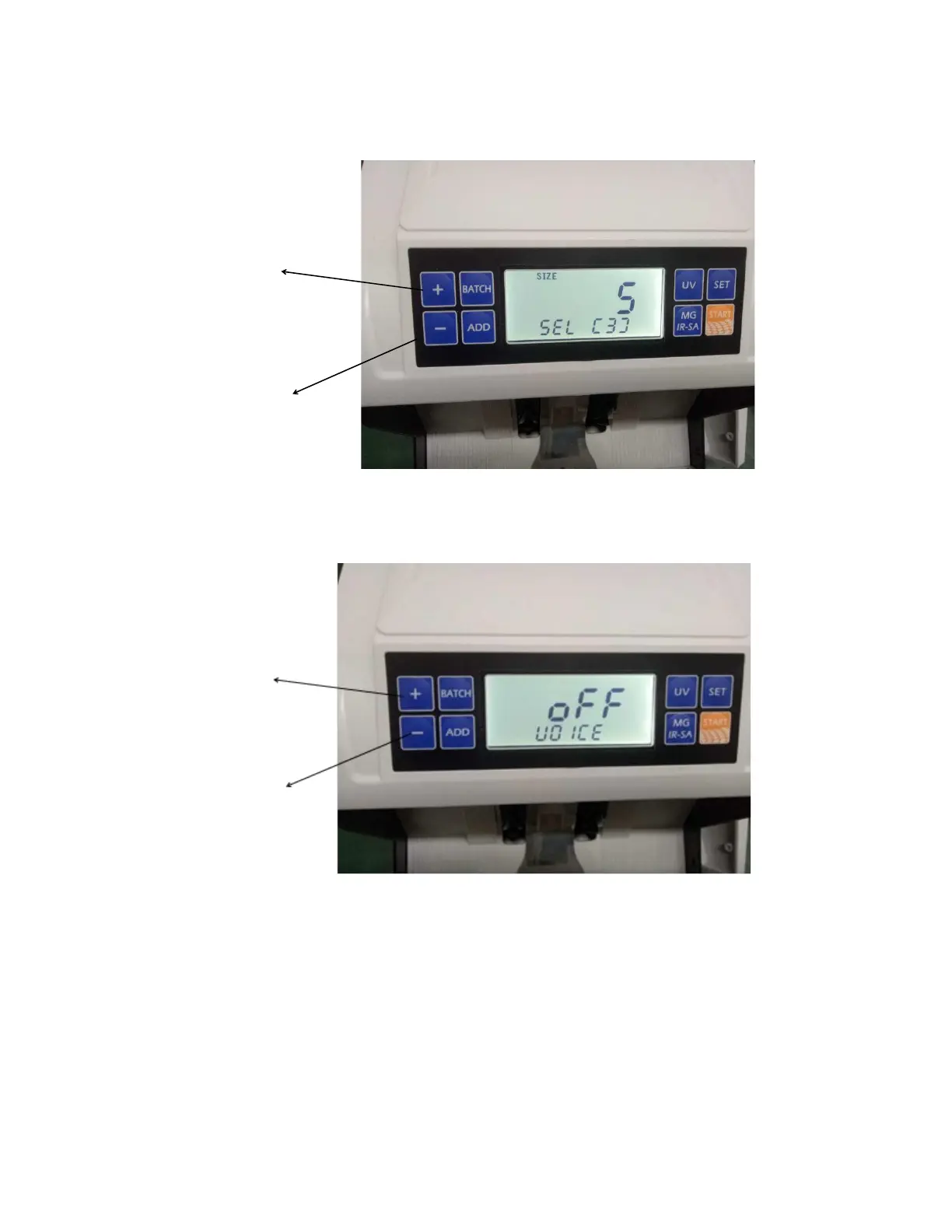 5. Press SET again to enter Voice ON and OFF (some models may differ).