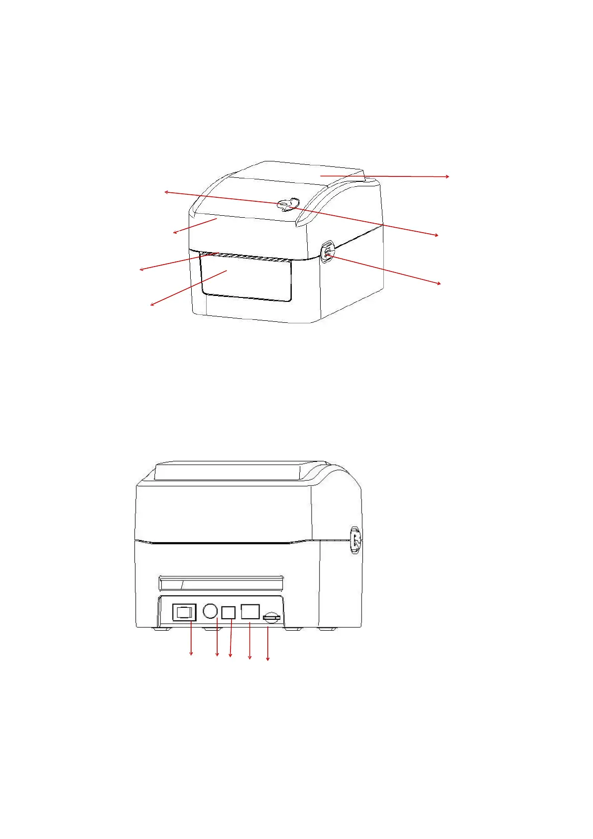Note: The transmission interfaces of the printer in the picture will vary depending on the