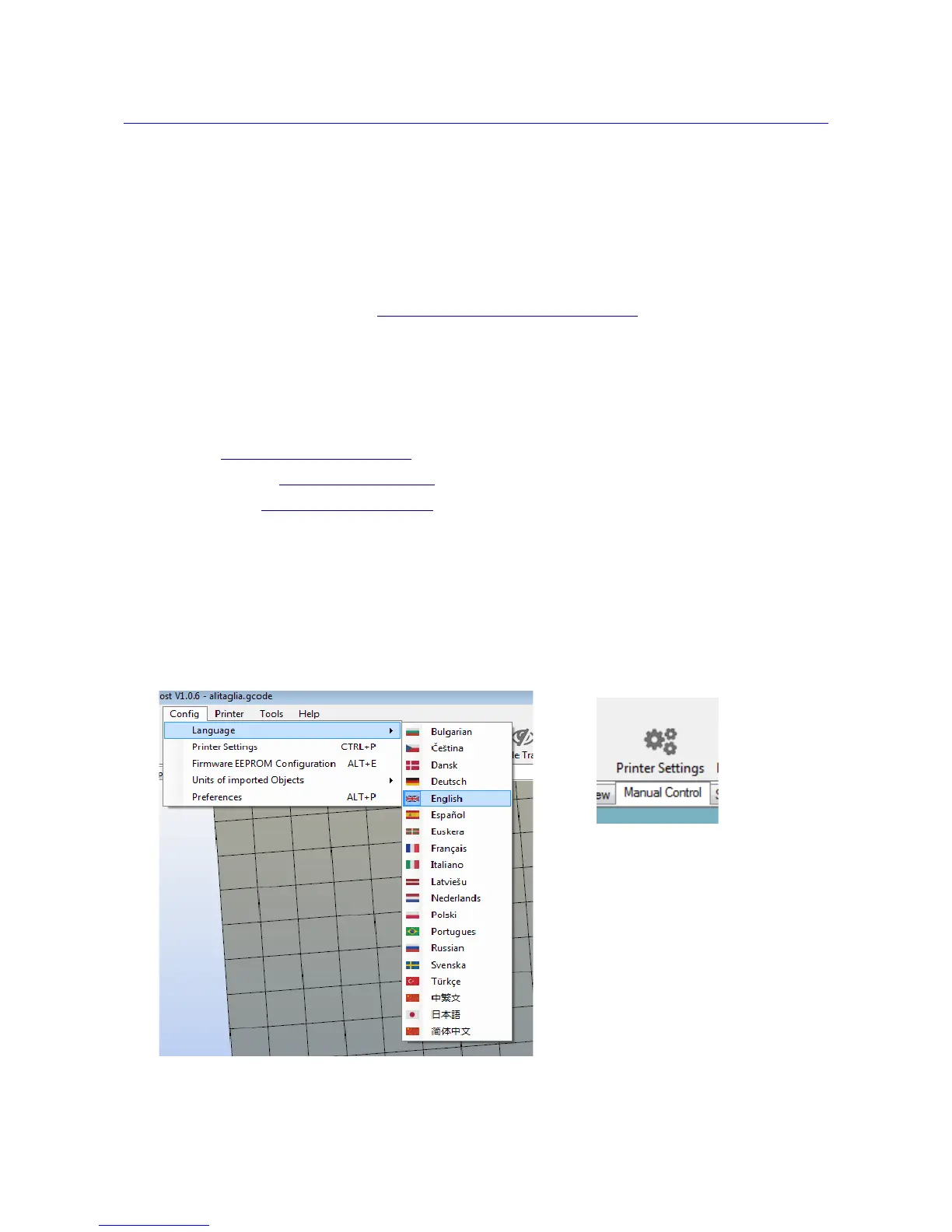 use the ENGLISH setup for the screen images. Clicking on PRINTER SETTINGS icon you will be shown the