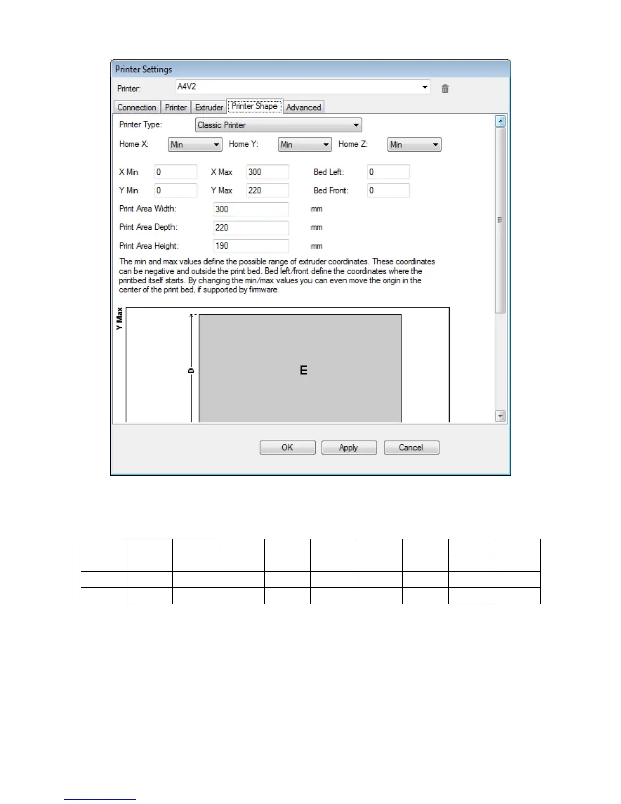 This tab will let you set you the print area dimensions, using the values as from following table: