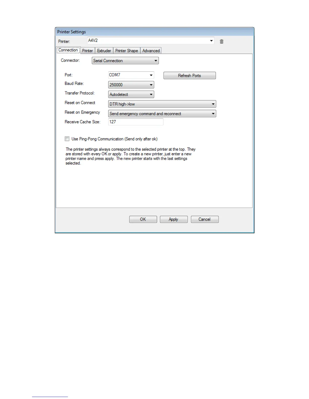 Connector: usually must be left on “Serial connection”.