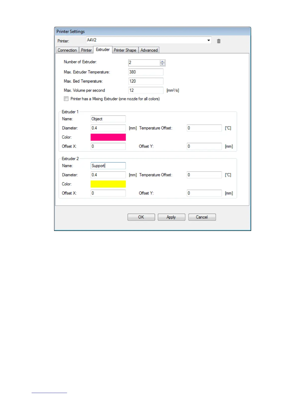 IMPORTANT: be sure to change preset color of each extruder (default is yellow for each one) to get easy