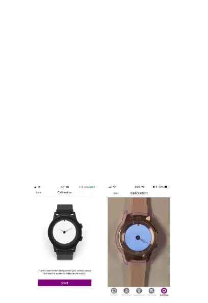 instructions to calibrate the watch hands on the Callie