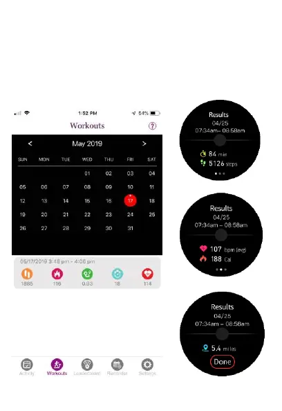 Workout results will be displayed once the recording is