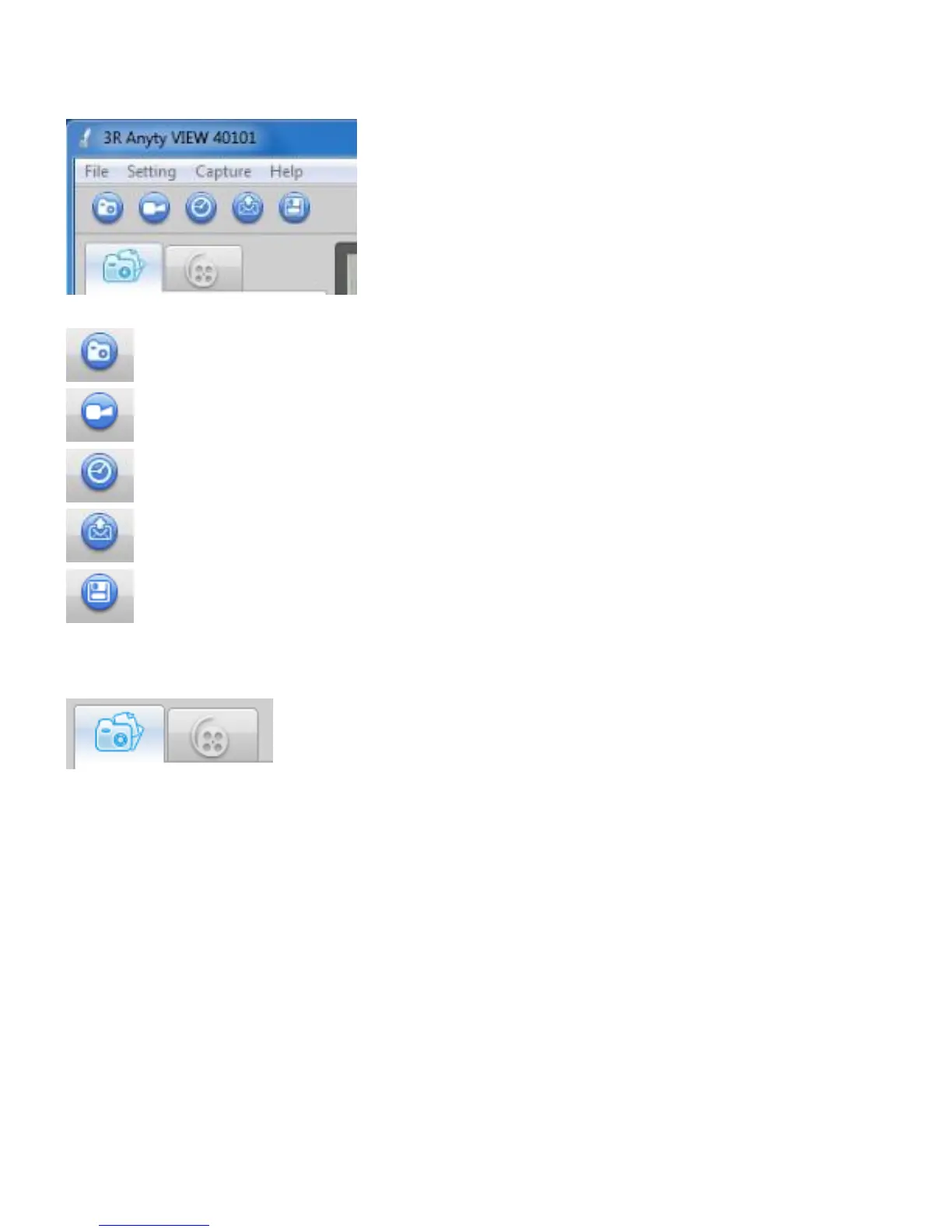 above to switch between thumbnail of images and movies. Data of image/movie will be saved in ‘3R files’