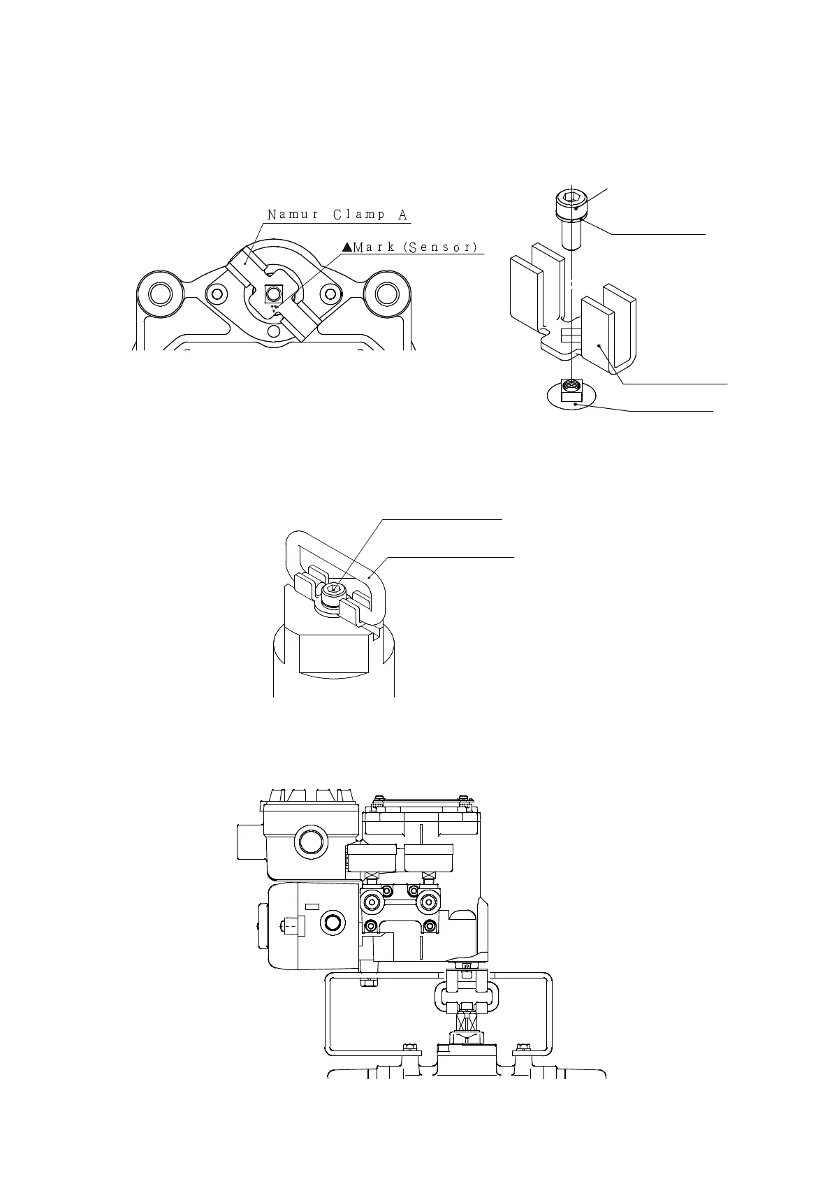 Insert Namur clamp A into boss and fasten screw (Keep the marked range). As shown in the figure