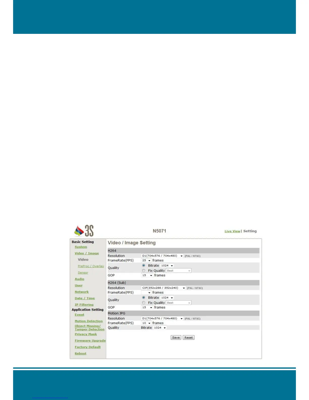 Resolution: Set the resolution of the image from 704 x 576, 704 x 480 and 352